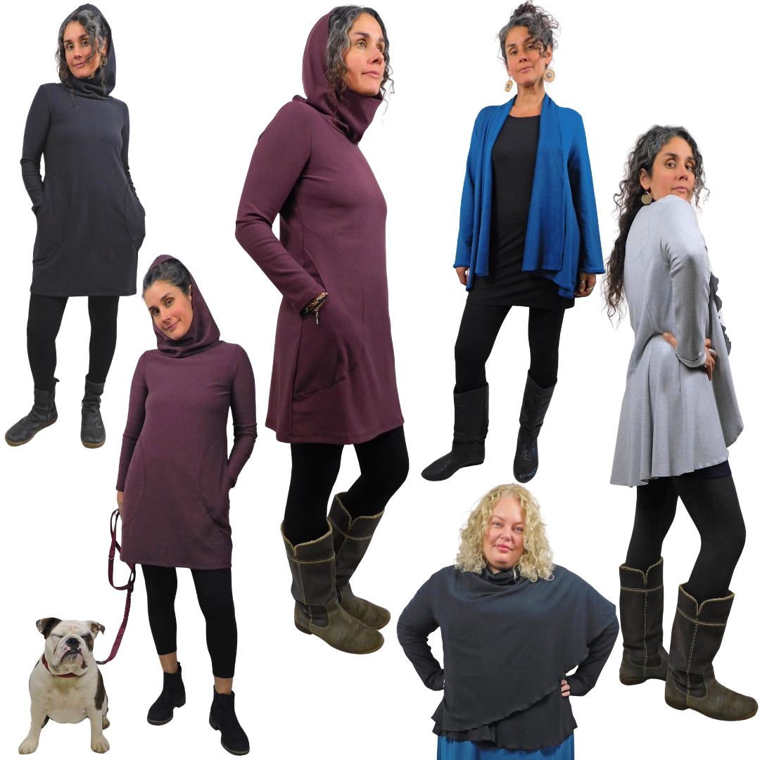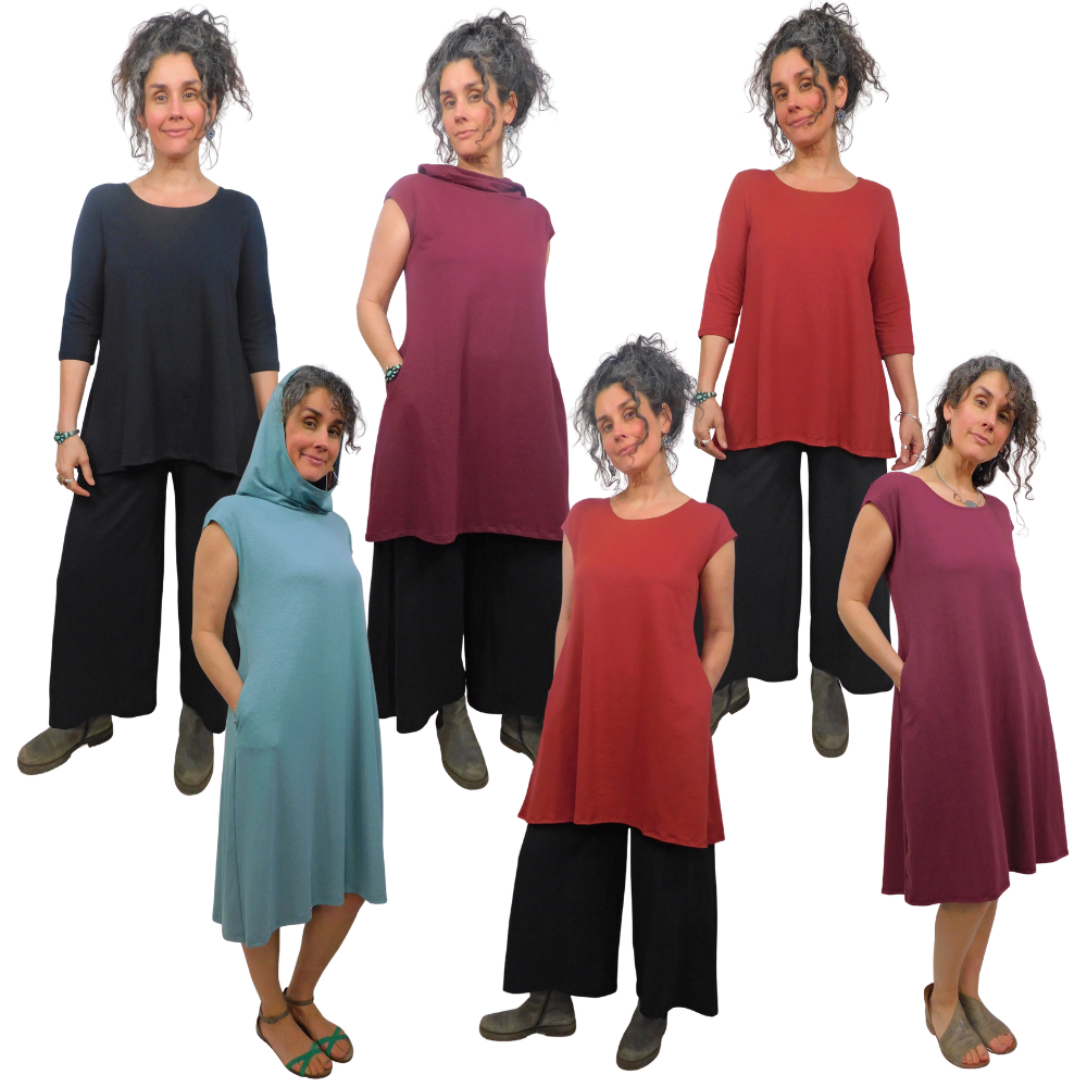"All garments are created, sampled and refined by me. I work closely with a small manufacturing team in Vancouver, BC, Canada, who grade my patterns carefully to create a perfect fit for sizes Small to Plus. They then cut and sew the garments, ship them back to me for final inspection, maintaining a consistency of quality and care between my hands and their hands, to yours."