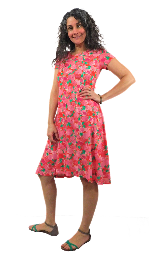 The design is a flattering look for all body types and is intended to hug the bust and shoulder, being to relax at the waist, and then flare at the hip.